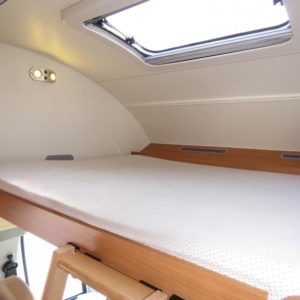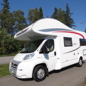 Pitkittäisellä parivuoteella varustettu alkoviauto.