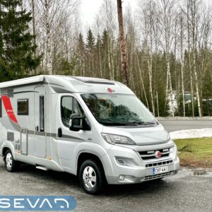 Harvoin on tarjolla tällaista monikäyttöpeliä ja vieläpä näin hienossa kunnossa. Auton takaosasta löytyy vastakkain istuttava sohvaryhmä ja sen yläpuolelta laskeutuu alas parivuode. Vuoteen ollessa ala-asennossa sohvapenkit tarjoilevat vielä 150x60cm vuoteet esim. lapsille. Keskelle autoa on sijoitettu WC-tilat ja keittiö. Edessä on pöytäryhmä minne yhdistyvät kääntyvät ohjaamon penkit ja sisäänkäynnin vieressä oleva pikkupenkki. Auton erikoisuushan on koko takaseinän mitalla ylös avautuva takaluukku. Tähän saa alle näppärästi vaikka pienen pöytäryhmän aamukahvittelua varten. Jos enemmin katettua tilaa haluaa pihan puolelle, niin tokihan tästä löytyy myös markiisi. Lämmitysjärjestelmänä on nopeasti lämpöä tuottava Trumatic ilmakeskuslämmitys ja sähkövastuksilla varustettuna. Sähkön omavaraisuudessa auttaa katolle sijoitettu aurinkopaneeli. Ohjaamossa kuljettajaa hellii automaattivaihteisto, vakkari ja automaatti-ilmastointi. Todella monikäyttöinen kokonaisuus, kannattaa tulla tutustumaan paikan päälle.