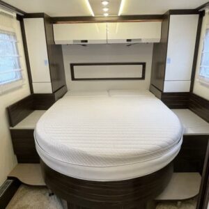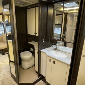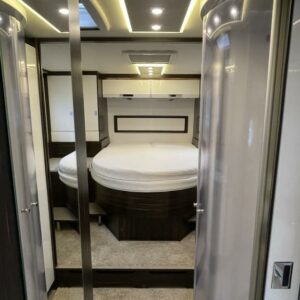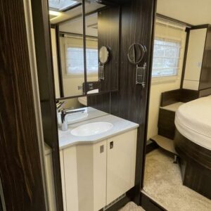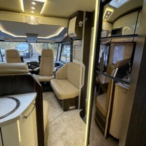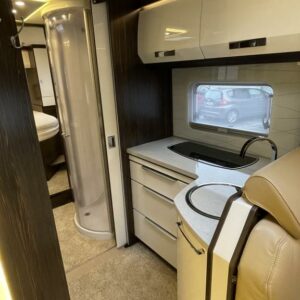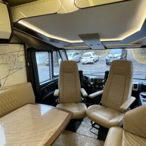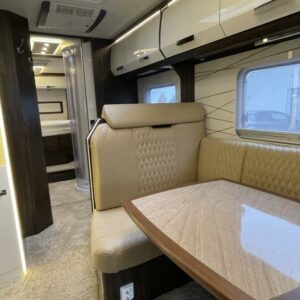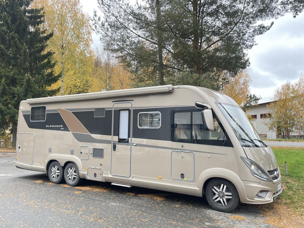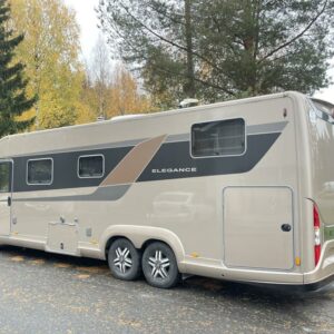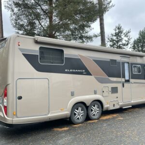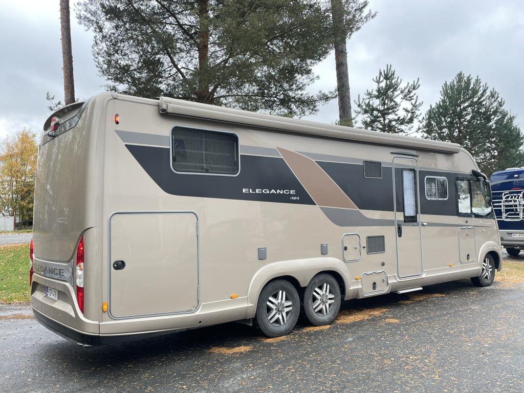 Bürstnerin tyylikäs ja hyvin varusteltu 3-Akselinen Elegance 920. Edessä tilava pöytäryhmä kääntyvin istuimin, istuimet nahkaa. Keskellä iso keittiö, erillinen wc ja kylpyhuone osasto. Takana saarekevuode. Edessä ohjaamoon laskeutuva parivuode. Tässä autossa on tilaa ja tyyliä.