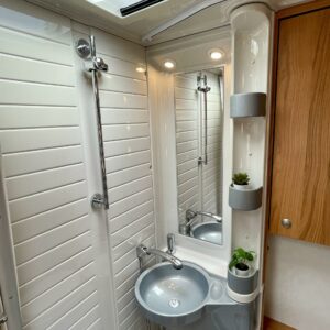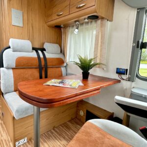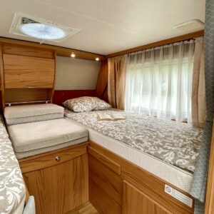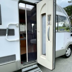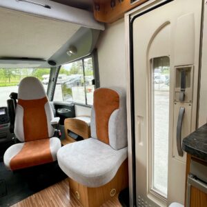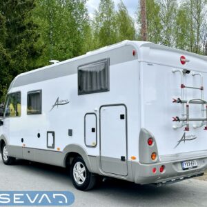 Pienillä kilometreillä ja ällistyttävän siisti Bürre. Ei oikein edes uskoisi, että auto on vuodelta 2008, sen verran upeassa kunnossa kaikki on. Tähän pakettiin kun laitetaan vielä takaa löytyvät erillisvuoteet, niin tämä ei meidän hallissa varmasti pitkään viihdy. Edestä löytyvä alaslaskettava sänky takaa myös sen, että kyytiläisiä mahtuu autoon neljä nukkumaan. Kapteeninpenkit kääntyvät ruokapöydän ympärille ja oleskelutilaa tässä täysintegroidussa matkiksessa on mukavasti. Wc-tilasta löytyy käännettävä lavuaari, jolla saadaan suihkutilaa lisää. Oven vierestä, keittiöstä löytyy kaikki tarvittavat toiminnot kokkailuun. Isoon takatalliin saa tavaraa mukaan reilusti. Tule tutustumaan autoon ja hämmästy!