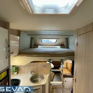 Juhlamallin Bürstner kattavin varustein. Tämä auto on ulkoilma retkiin valmis, esimerkiksi maastopyöräilijälle tai muuten vain tyylinsä tuntevalle seikkailijalle. Invertteri on ohjattu ulostuloltaan telttapalvelun pistokkeeseen, joka mahdollistaa esimerkiksi sähköisen savustuspöntön tai sähköpyörien latauksen suoraan ulkopistokkeella. Tämä auto vaatii kertakaikkiaan olla puskaparkissa, jossa vietät kuitenkin hyvin nukutun yön höyhensaarilla mahtavissa erillisvuoteissa.