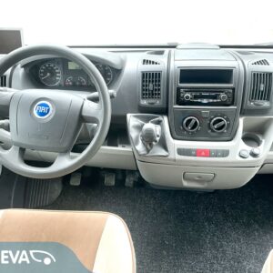 Edessä tilava istuinryhmä jopa kuudelle, auton keskiosassa keittiö ja ylös nostettu reilun kokoinen jääkaappi, takaosassa WC ja pitkittäinen parivuode. Autosssa on lisäksi invertteri, lattiassa sähköinen lämmitys ja katolla aurinkopaneeli.