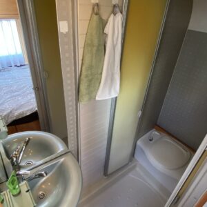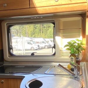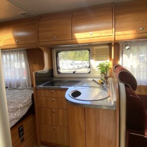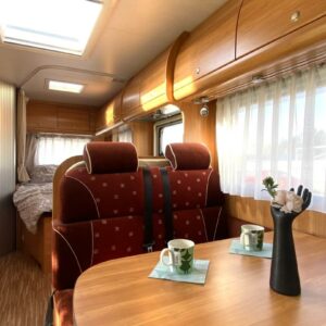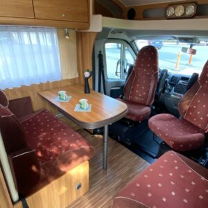 Avara ja valoisa matka-auto matalalla parivuoteella. Pohjaratkaisuna edessä pöytäryhmä kääntyvin ohjaamon penkein, takana pitkittäinen parivuode sekä WC – ja suihkutilat. Keskellä tilava L-keittiö, jossa korkealle nostettu jääkaappi sekä kaasu-uuni.