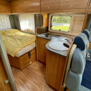 Asiallinen Burstnerin matka-auto kohtuullisella kilometrimäärällä (113tkm.). Auton takaosasta löytyy pitkittäinen parivuode. Vuoteen alle jää säilytystiloja tavaroille ja lisäksi on koko auton leveydelle ulottuva pidemmän tavaran kuljetusmahdollisuus takaosan kaksoispohjan ansiosta. Takana toisella puolella on WC/kylpyhuonetilat. Keskelle on sijoitettu L-keittiö mistä löytyy mm. iso jääkaappi erillisellä pakastinlokerolla. Etuosa on pyhitetty tilavalle oleskeluryhmälle. Pöytäryhmään yhdistyvät kääntyvät ohjaamon penkit, sekä erillinen sivupenkki. Pöytäryhmästä saadaan tehtyä yksi lisävuode tarvittaessa. Ohjaamovarusteina on mm. ilmastointi ja vakionopeuden säädin. Peruutuskamera tuo varmuutta peruutustilanteissa. Lämmitysjärjestelmänä on Trumaticin tehokkain (6kw) ilmakeskuslämmitys sähkövastuksilla varustettuna. Lisäksi löytyy mukavuusvarusteena sähköinen lattianlämmitys. Muista varusteista mainittakoon mm. kaasupullonvaihtaja, markiisi ja pyöräteline. Vetokoukkukin on valmiiksi asennettuna 1700/750kg vetomassoilla. Hiljattain katsastettu 4/24.