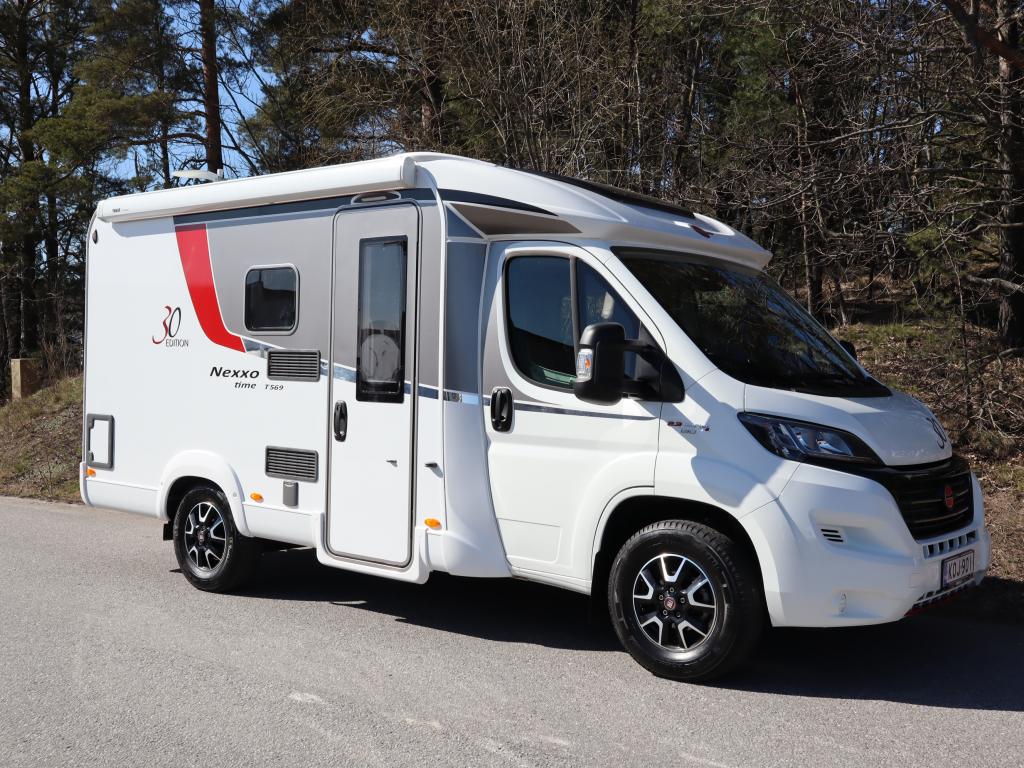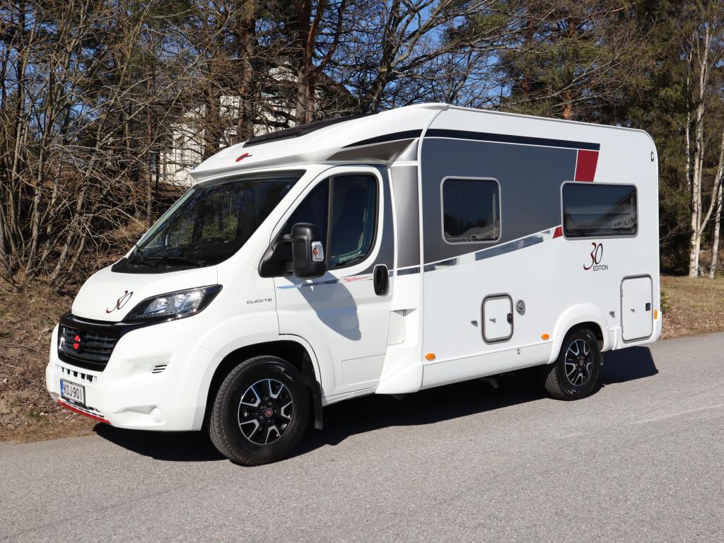 Varusteissa mm. navigointi, kahdet renkaat, vetokoukku, Truma sähköpatruunalla