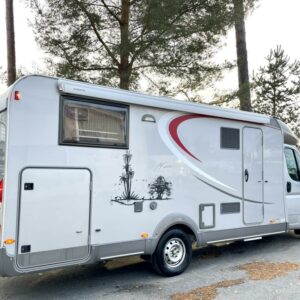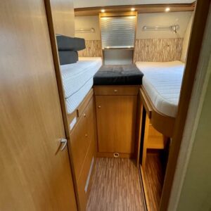 Pohjaratkaisussa edessä sohvaryhmä josta pedattavissa lisävuode sekä kääntyvät etuistuimet. Keskiosassa keittiö reilunkokoisella jääkaapilla sekä mikrolla. Keskiosassa myös kaappitilaa sekä erilliset suihku & wc-tilat. Takaosassa erillisvuoteet jotka pedattavissa yhdeksi suureksi parivuoteeksi. Alla reilunkokoinen takatalli.