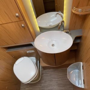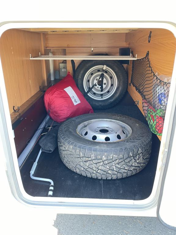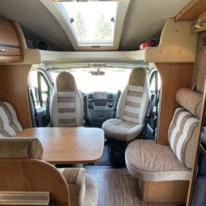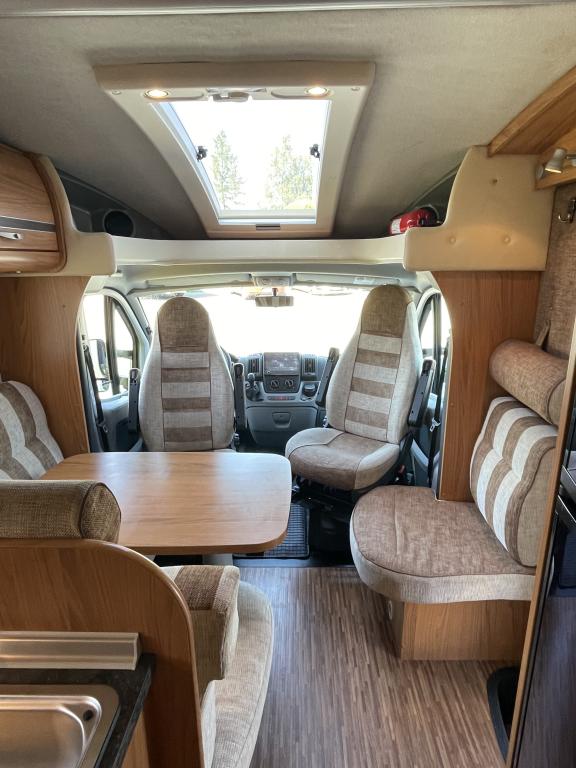 Mukavat varusteet, mm: Ilmastointi sekä ohjaamossa että asunto- osassa, Truma- keskuslämmitys sähköpatruunalla, Lattialämmitys, Lämmitettävä harmaavesisäiliö, Markiisi, Pyöräteline, Peruutuskamera/ navi -soitin isolla 9″- näytölllä,v 2 x Renkaat,..