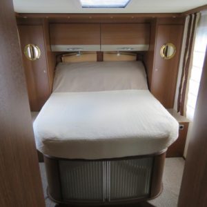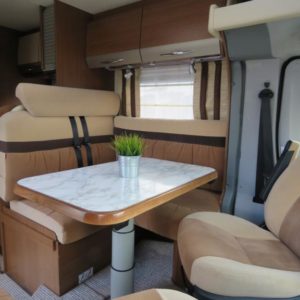 7,5 m kokonaispituus tarjoaa hulppeat sisätilat. Auton takaosassa moottoroitu saarekevuode, edessä valoisa ja viihtyisä pöytäryhmä sivusohvalla. Keittiön varustukseen kuuluu ison jääkaappi- pakastimen lisäksi kaasu- uuni.