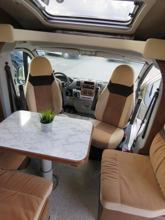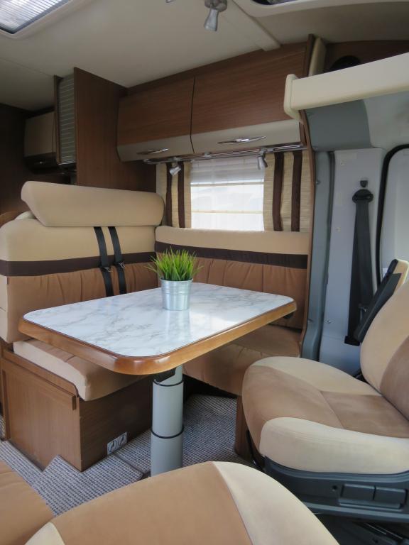 7,5 m kokonaispituus tarjoaa hulppeat sisätilat. Auton takaosassa moottoroitu saarekevuode, edessä valoisa ja viihtyisä pöytäryhmä sivusohvalla. Keittiön varustukseen kuuluu ison jääkaappi- pakastimen lisäksi kaasu- uuni.