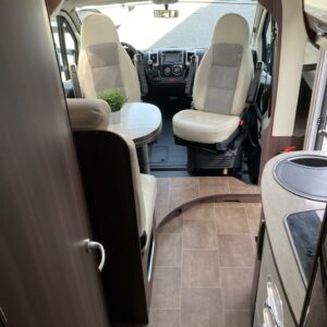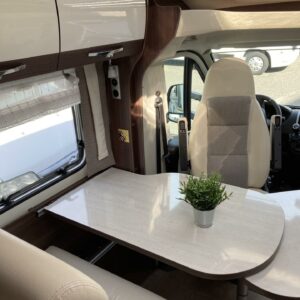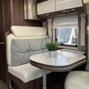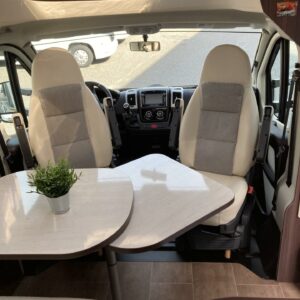 Sisätiloissa vallitsee tyylikäs tumman puun ja vaalean nahkan harmonia. Etuosassa voit nauttia tilavasta istuinryhmästä, jossa mahtuu istumaan neljä henkeä. Ohjaamon penkit ovat kääntyviä yhteisistä hetkistä entistä mukavampia.