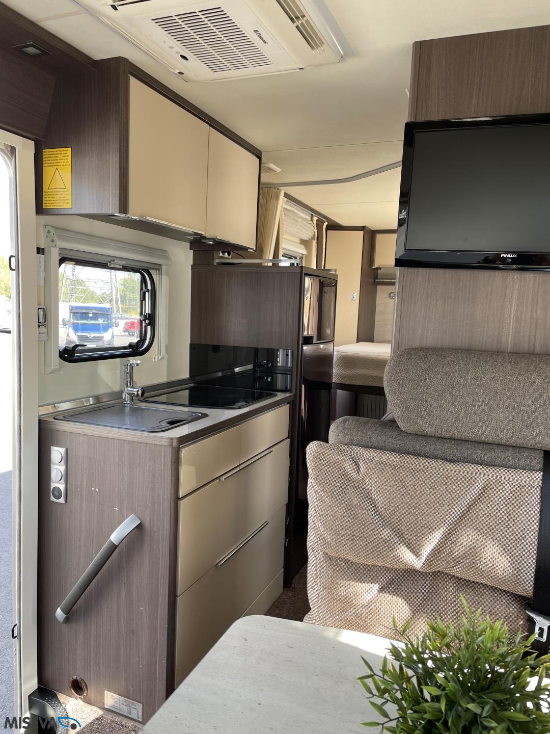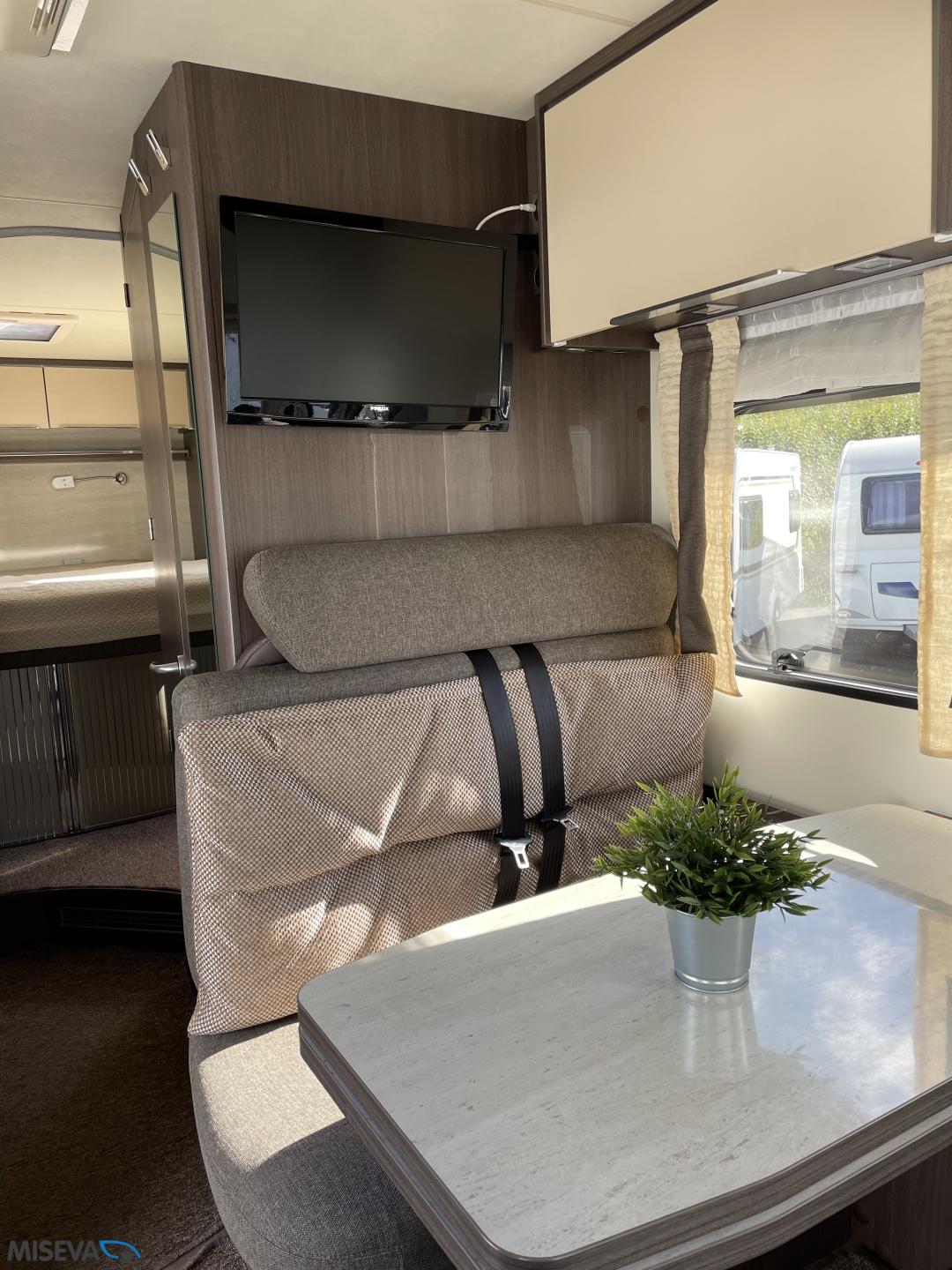 Varusteina mm: Trumatic ilmakeskuslämmitys sähköpatruunalla, Vakionopeudensäädin, Asuintilan ja ohjaamon ilmastointi, Markiisi, Pyöräteline, Lattialämmitys, 2x TV, Saarekevuode, Laskuvuode…