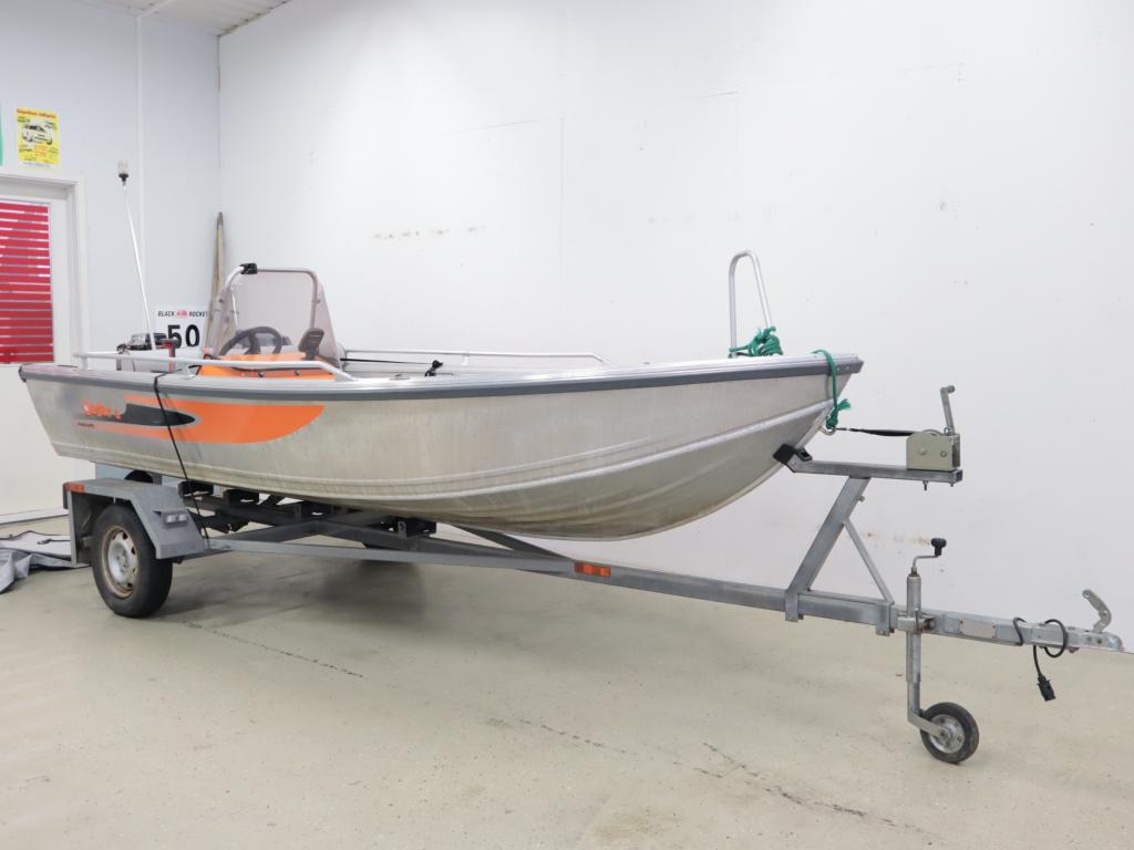 Varusteina mm: Sähköstartti, Pilssipumppu, Nahkapenkit, Satamapeite, Omavalmistetraileri, Kaikuluotain,..