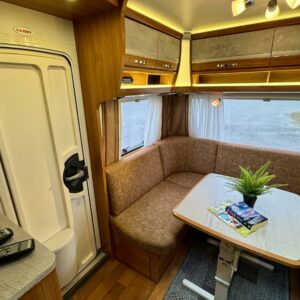 Oletko kyllästynyt veivaamaan vaunun jalkoja, aina kun saat vaunun paikoilleen? Tässä vaunussa ei ole sitä murhetta. Tukijalat löytyy jokaisesta kulmasta ja kaikki toimii kaukosäädöllä. Sen lisäksi vaunussa on vielä moveri, jolla saat varmasti paikoitettua Cabbyn juuri sinne minne haluat. Ihanat asiat eivät jää vain vaunun ulkopuolelle. Cabby on sisältä siisti ja tyylikäs! Takana ruokailuryhmä, josta saa tarvittaessa sängyn. Edessä mukava parisänky ja wc-tila. Keskeltä löytyy kokonaisuuden sydän, vaunun keittiö. Kaikki on toteutettu hyvällä maulla ja värimaailma hivelee silmää. Kaiken kruunaa Alden nestekiertoinen lämmitys ja sähköinen lattialämmitys.
