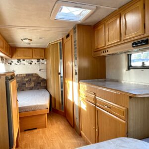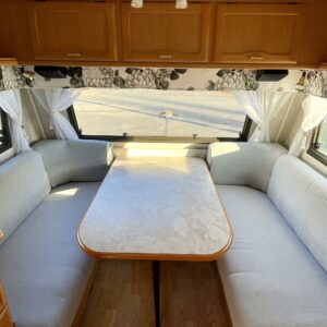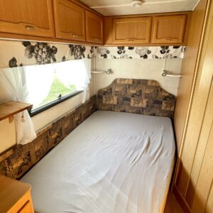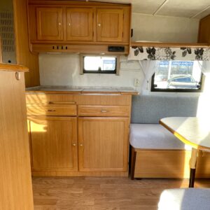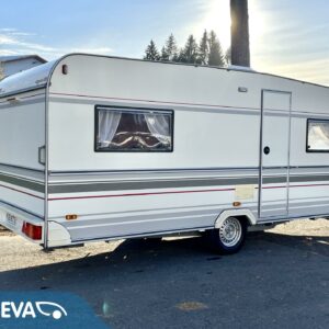 Nyt on ikäisekseen hienossa kunnossa oleva Cabby. Toki vuodet näkyy, mutta näkyy myös että tästä vaunusta on pidetty hyvää huolta. Alden pystypannu lämmittää sisätiloja ja sisällä on kotoisa tunnelma. Etuosan ruokailuryhmän saa muutettua sängyksi ja takana sijaitsee parisänky. Kaappitilaa on runsaasti. WC-/ suihkutila on suorastaan iso tämän kokoluokan vaunussa. Vaunuun on rakennettu myös pieni ilmastointi pöytäryhmän alle viilentämään tulevia kesähelteitä. Tule Turenkiin katsomaan vaunua ja ihastu.