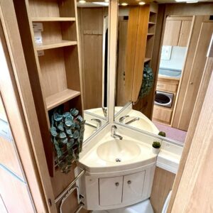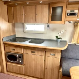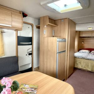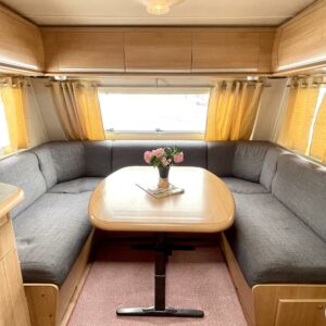 Vaunun etuosassa on tilava istuinrymä, keskelle keittiö sekä suuri jääkaappi sekä mikroaaltouuni ja vaunun takaosasta löytyvät varsin tilava WC sekä saarekevuode. Makuuhuoneen voi sulkea liukuovella omaksi tilakseen.