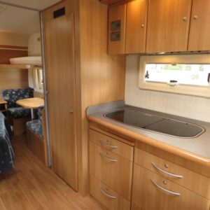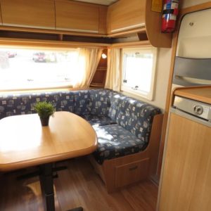 Toimiva pohjaratkaisu; Vaunun takaosassa muhkea parivuode ja pieni pöytäryhmä. Pöytäryhmän yläpuolella oleva kaappi mahdollista kääntää varavuoteeksi. Vaunun etuosasta löytyy viihtyisä U- ryhmä.