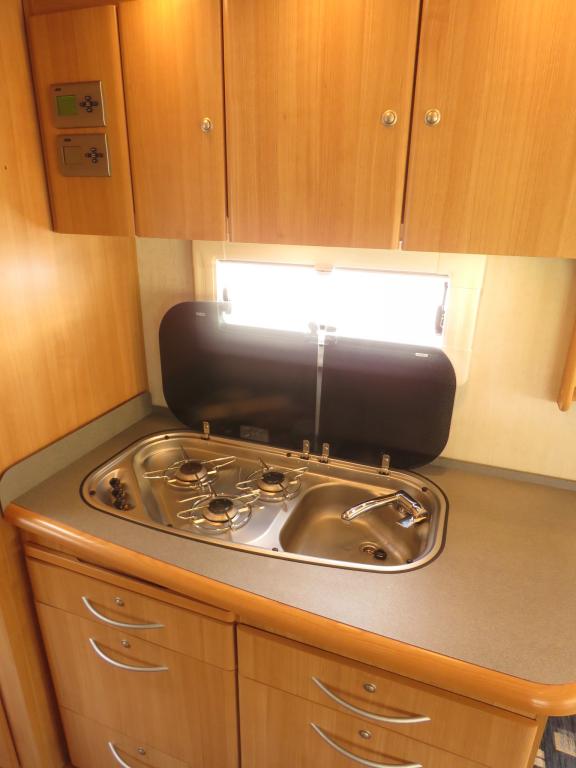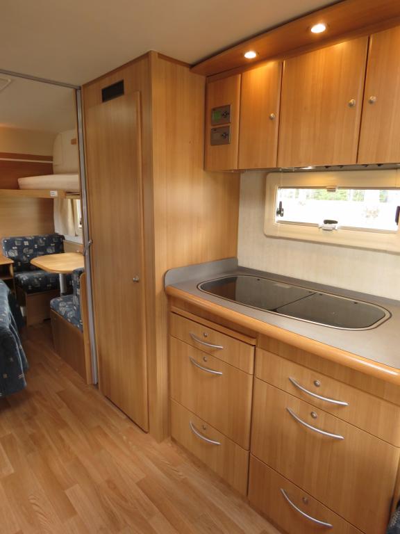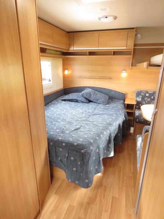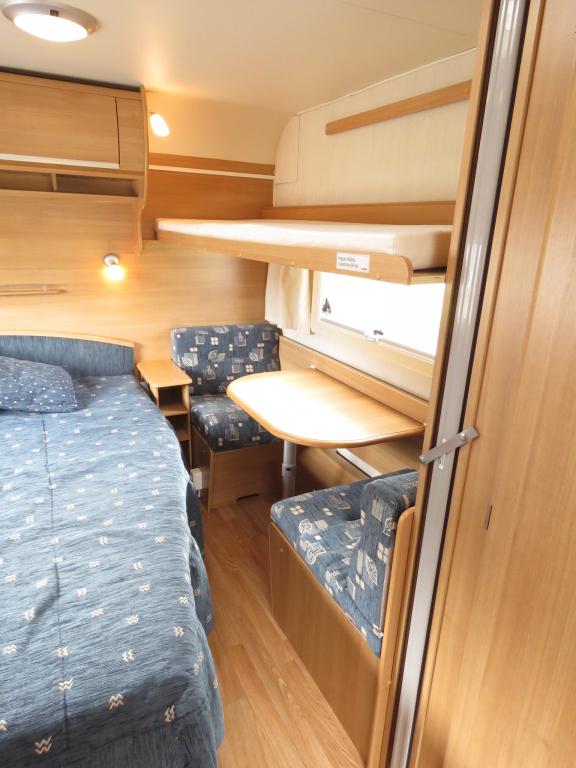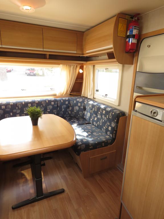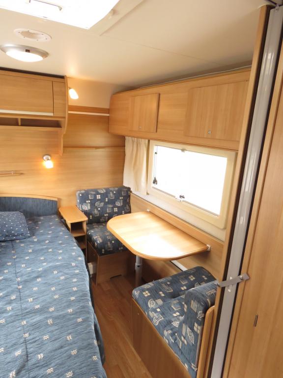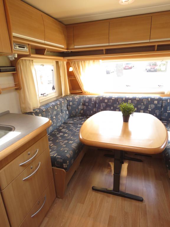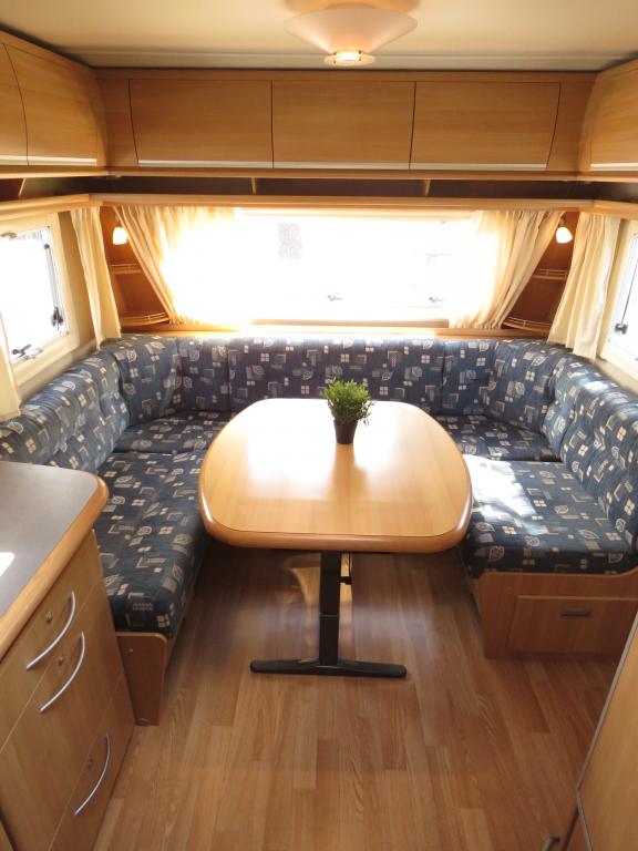 Toimiva pohjaratkaisu; Vaunun takaosassa muhkea parivuode ja pieni pöytäryhmä. Pöytäryhmän yläpuolella oleva kaappi mahdollista kääntää varavuoteeksi. Vaunun etuosasta löytyy viihtyisä U- ryhmä.