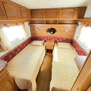 Kevyt vaunu erillisvuoteilla edullisesti. Teholas Alde- nestekiertolämmitys myös lattiassa sekä vahvat eristeet.
