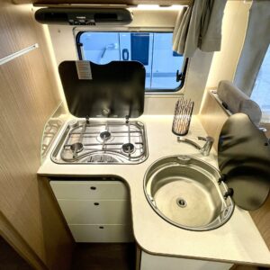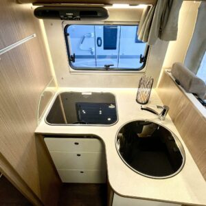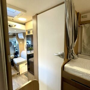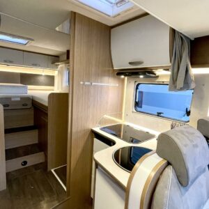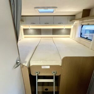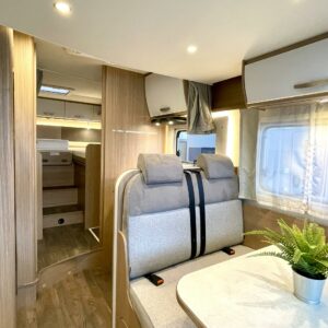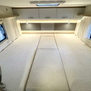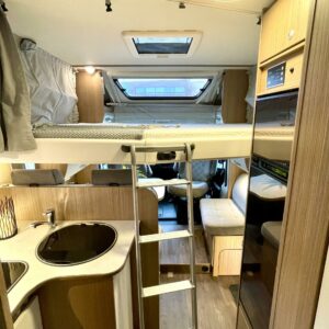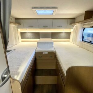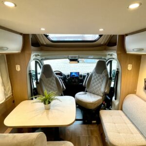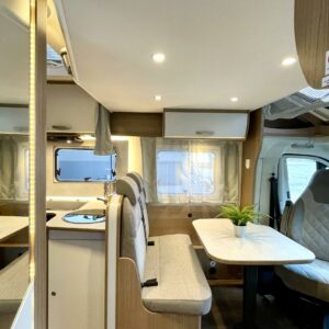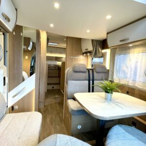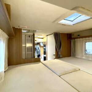 Tämä pohjaratkaisu sopii sekä pariskunnille että perheille. Pitkittäiset takasängyt, suuri takatalli, keskiosan nostovuode ja käytännöllinen L- keittiö tekevät matkanteosta mukavaa ja helppoa. Fiatin pomminvarma alusta yhdistettynä ZF:n 9-vaihteiseen automaattivaihteistoon takaavat matkan sujuvuuden ilman turhaa stressiä. Ohjaamon ilmastointi, suurinäyttöinen multimedialaite etu- ja takakameralla, alamäkiavustin ja kaistavahti helpottavat kuljettajan (sekä apukuskin) arkea.