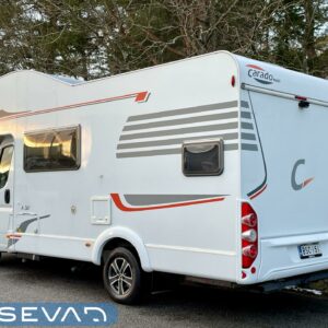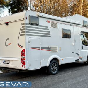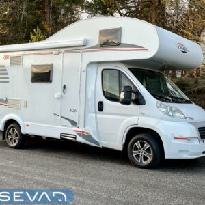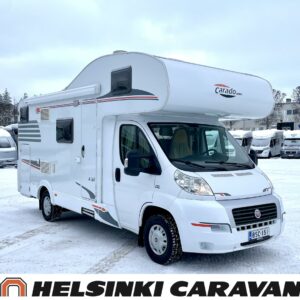 Siistikuntoinen perhemalli, jossa istuimet ja vuoteet kuudelle. Edessä ylösnostettava poikittainen parivuode alkovissa. Keskellä perinteinen pöytäryhmä ja keittiö, jossa kivasti laskutilaa. Keskellä taaempana tilava pesuhuone ja takana poikittainen parivuode. Iso takatalli.