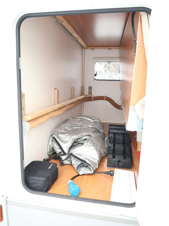 Varusteina mm: Ilmastointi ohjaamossa, Tehokas 6 kW- Truma- keskuslämmitys, Pyöräteline, 2 x Renkaat,..