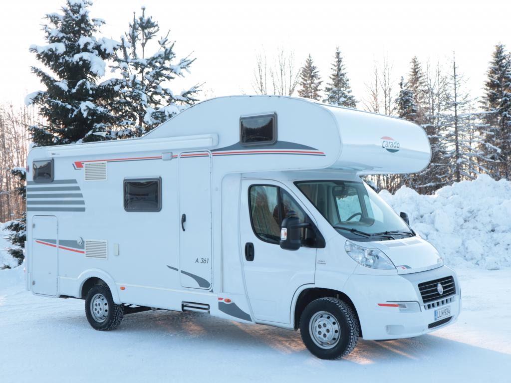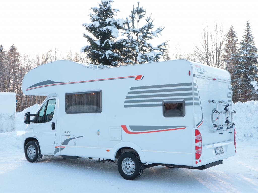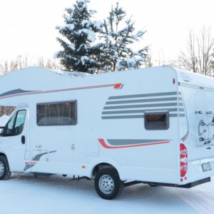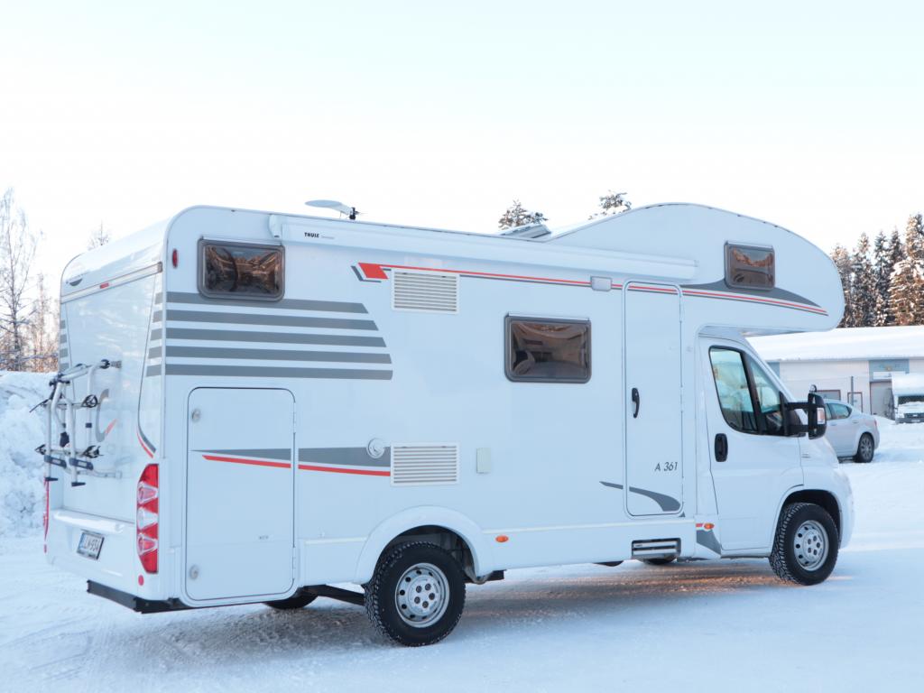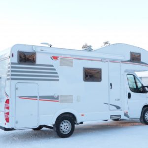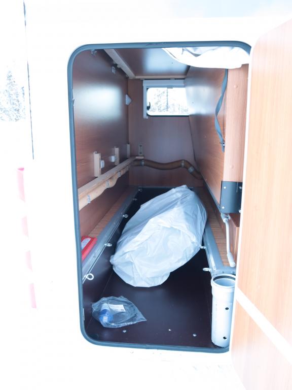 Mukavat varusteet: Ilmastointi ohjaamossa, Truma- keskuslämmitys sähköpatruunalla, Iso jääkaappi- pakastin, Lattialämmitys, Markiisi, Pyöräteline, 2 x Renkaat,..
