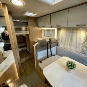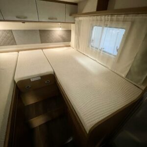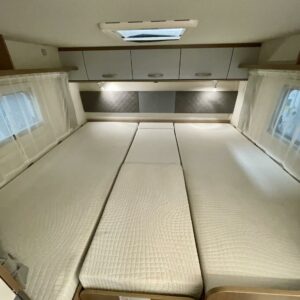 Tilava täysintegroitu matkailuauto, joka tekee matkanteosta nautinnon. Erillissängyt on helppo yhdistää mukana tulevan lisäpatjan avulla koko auton levyiseksi parivuoteeksi, ja ohjaamon päällä oleva suuri alaslaskuvuode tuo lisää mukavia nukkumapaikkoja.