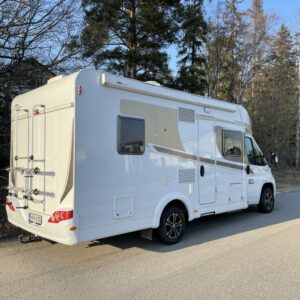ABS-jarrut,Erikoisvanteet,Ilmastointi ajotilassa,Ilmastointi aut.,Ilmastointi man.,Jääkaappi,Kahdet renkaat,Kasetti WC,Lattialämmitys,Lattiamatot asunto-osassa,Liesi,Lohkolämmitin,Lämminvesiboileri,Markiisi,Navigaattori,Pakastelokero,Parivuode,Parkkitutka / kamera,Pyöräteline,Sähkökäyttöiset ikkunat,Sähköpatruuna,Sähköpeilit,Sähkörappu,Trumatic,TV-antenni/lautasantenni,Vak.nopeudensäädin,Vetokoukku,Navigointijärjestelmä,Pysäköintitutka tai -kamera,Turvatyynyt,soitin