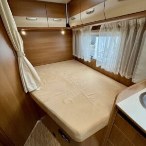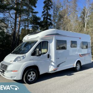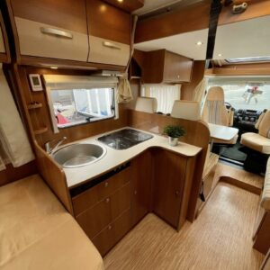 Pohjaratkaisuna edessä avara pöytäryhmä kääntyvin ohjaamon penkein sekä sivusohva. Takana parivuode ja WC- sekä suihkutila. Keskellä keittiö, sekä pöytäryhmän päälle laskettava vuode..