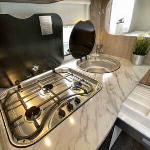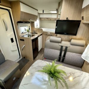 Kompaktit, mutta tilavat kuusi metriä tarjoavat valoisat ja viihtyisät puitteet reissuille. Vääntävä moottori ja automaatti tekevät ajamisesta vaivatonta, ja korkea maavara mahdollistaa liikkumisen myös haastavammissa maastoissa, joten leirin voi perustaa lähes minne tahansa.