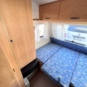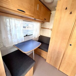 Varusteina mm: Truma kaasulämmitin, Jälkiasenteinen sähkövastus, Pussimarkiisi, Liesi…