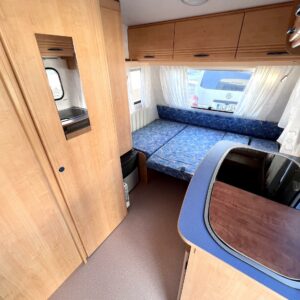 Varusteina mm: Truma kaasulämmitin, Jälkiasenteinen sähkövastus, Pussimarkiisi, Liesi…