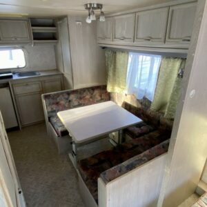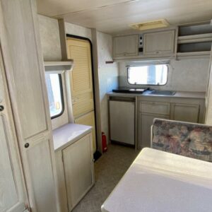 Vaunun etuosassa poikittainen parivuode, takana keittiö ja WC. Pöytäryhmä sijattavissa toiseksi parivuoteeksi.