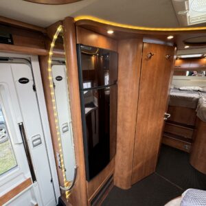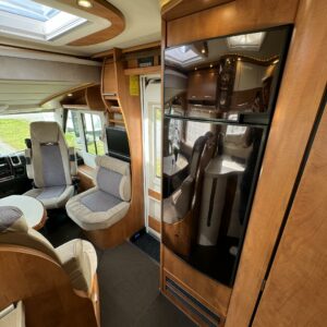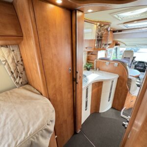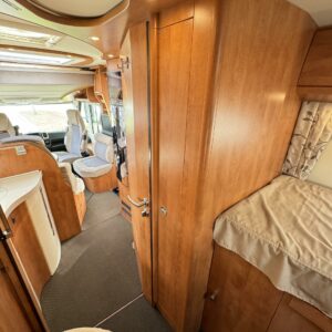 Auton takaosassa erillisvuoteet, etuosassa valoisa pöytäryhmä jopa kuudelle illansistujalle. Lisäksi keittiö isolla jääkaappipakastimella sekä leveä laskuvuode ohjaamon päällä. Auton keskellä keittiö sekä WC- / Suihkutila.