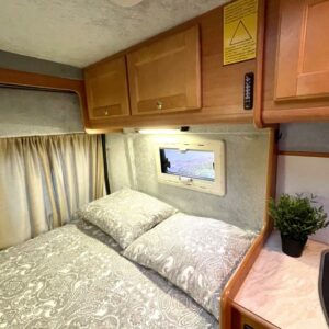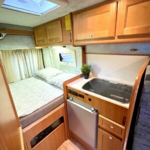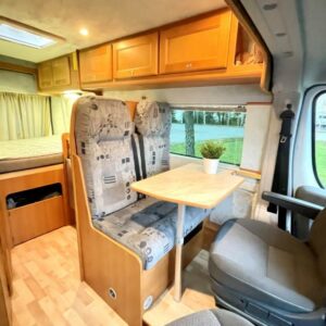 Pohjaratkaisussa edessä kääntyvät etuistuimet ja sohvaryhmä. Keskiosassa Wc- tila ja keittiö. Takaosassa poikittainen parivuode jonka alla hyvin säilytystilaa.