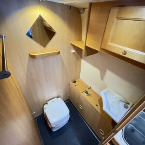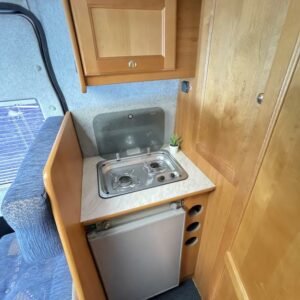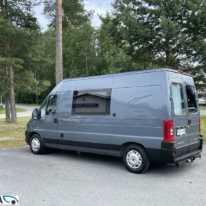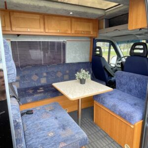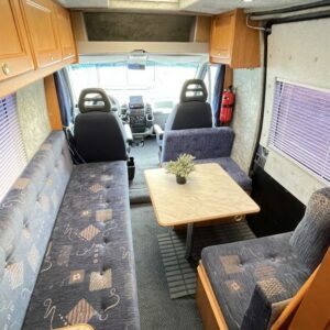 Lyhyt ilmastoitu retkiauto vaikka jokapäiväiseen ajoon. Asuinosassa pitkittäinen sohva joka sijattavissa vuoteeksi. Vastakkainistuttava aamupalaryhmä, johon saa myös tehtyä vuoteen. Keittiössä kaasuliesi ja jääkaappi pakastelokerolla. Vastakkaisella puolella pesuallas. Takana WC- tila ja kivasti kaappitilaa.