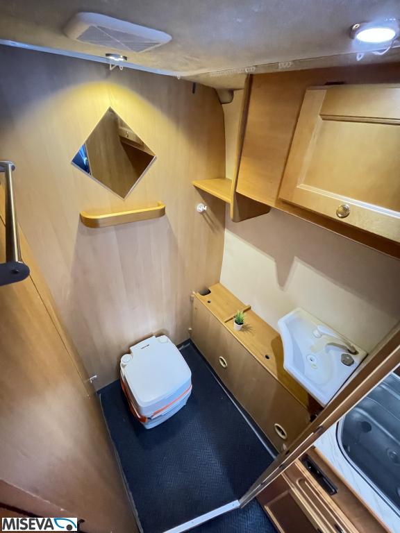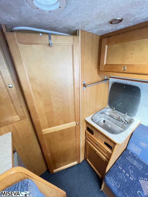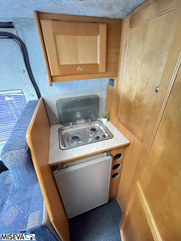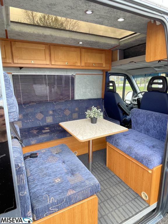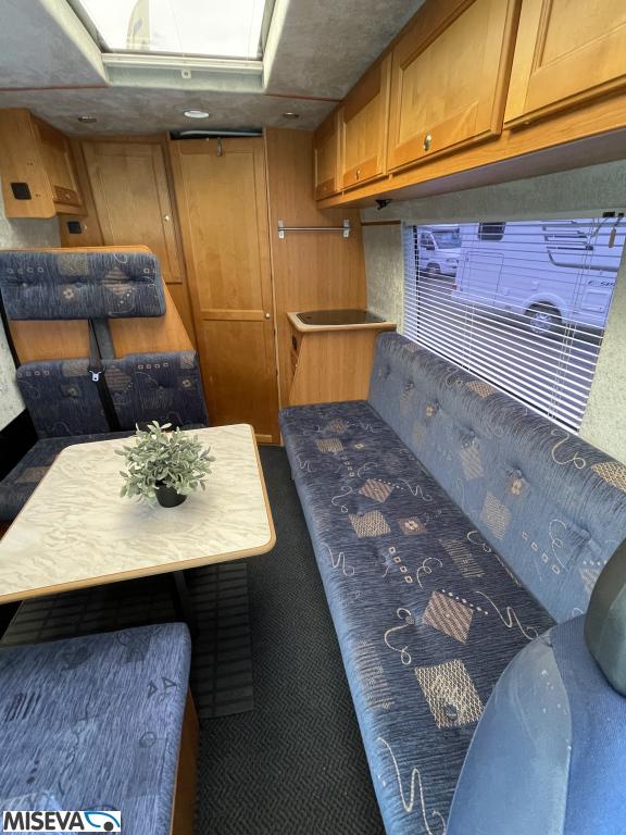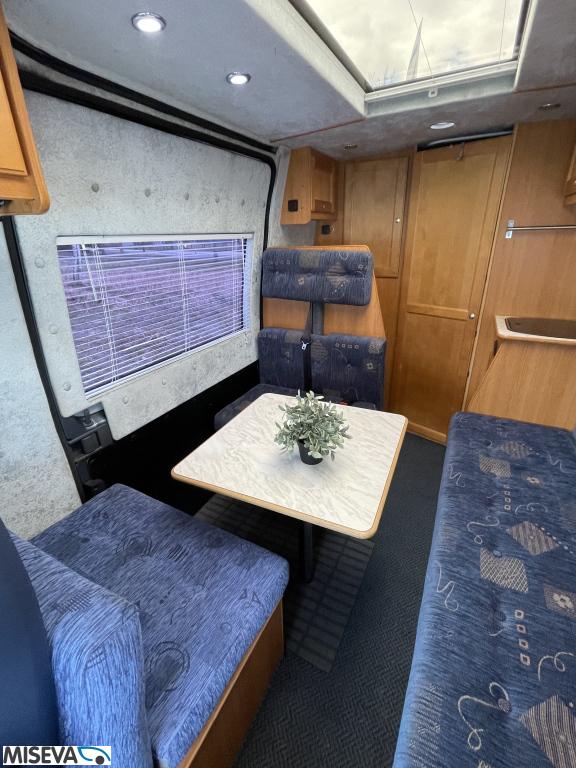 Lyhyt ilmastoitu retkiauto vaikka jokapäiväiseen ajoon. Asuinosassa pitkittäinen sohva joka sijattavissa vuoteeksi. Vastakkainistuttava aamupalaryhmä, johon saa myös tehtyä vuoteen. Keittiössä kaasuliesi ja jääkaappi pakastelokerolla. Vastakkaisella puolella pesuallas. Takana WC- tila ja kivasti kaappitilaa.