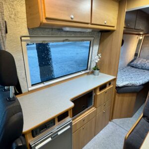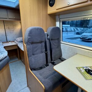Alle kuuteen metriin on saatu pakattua mukavat erillisvuoteet, pöytäryhmä ja runsaasti laskutilaa tarjoava keittiösaareke. Kaksi isoa kattoluukkua tuovat runsaasti luonnonvaloa koko autoon.