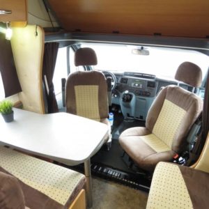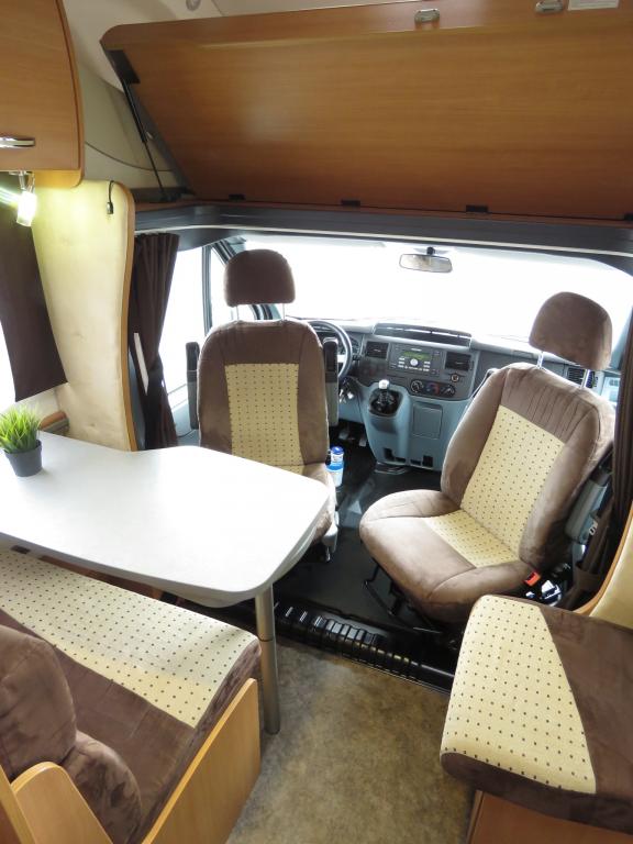 edessä istuinryhmä 4:lle kääntyvin ohjaamon penkein. Lämmitys Webastolla.