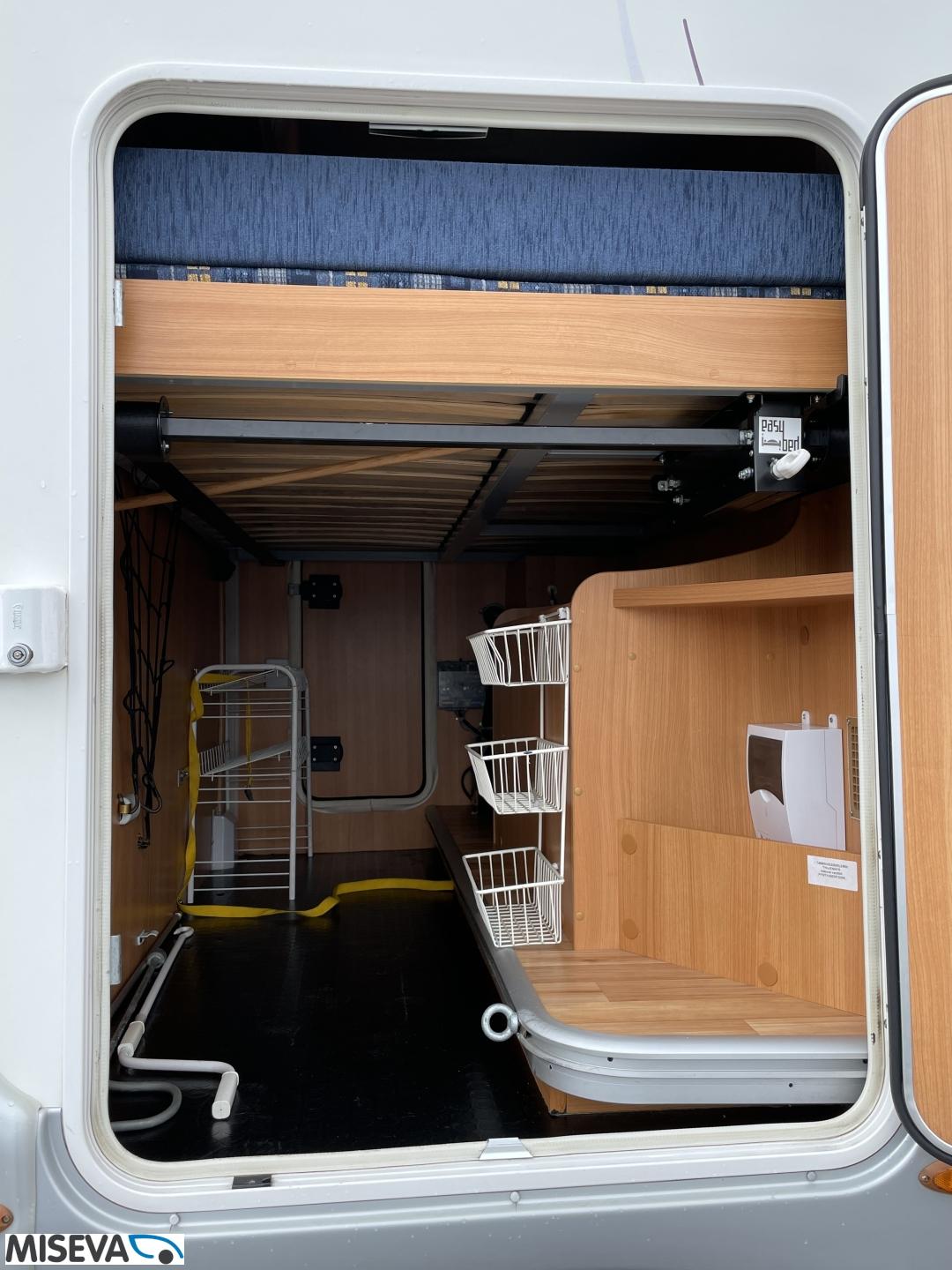 Varusteina mm.: Tehokas dieselkäyttöinen Webasto- ilmakeskuslämmitys, Polttoainekäyttöinen moottorinlämmitin, Ilmastointi ajotilassa, Vakionopeudensäädin, Markiisi, Pyöräteline, ym.
