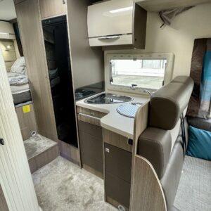 Auton takaosassa on korkeussäädettävä parivuode ja tilava takatalli, johon on pääsy sivuluukkujen lisäksi myös auton takaa. Auton etuosasta löytyy viihtyisä L- pöytäryhmä sivusohvalla. Kääntyvien etuistuinten ansiosta iltaa mahtuu istumaan saman pöydän ympärille mukavasti jopa 6 henkeä. Lisää nukkumapaikkoja järjestyy helposti katosta laskeutuvan nostovuoteen ansiosta. Auton keskivaiheilta löytyy isolla jääkaappi- pakastimella varustetun keittiön lisäksi erillisellä suihkunurkkauksella varustetut pesu-/ WC -tilat.