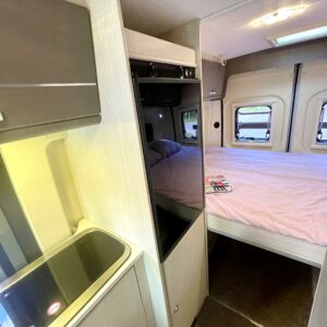 Peräpäässä on parivuode ja suuri tavaratila, johon on pääsy myös auton sisäpuolelta.