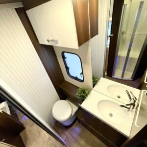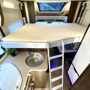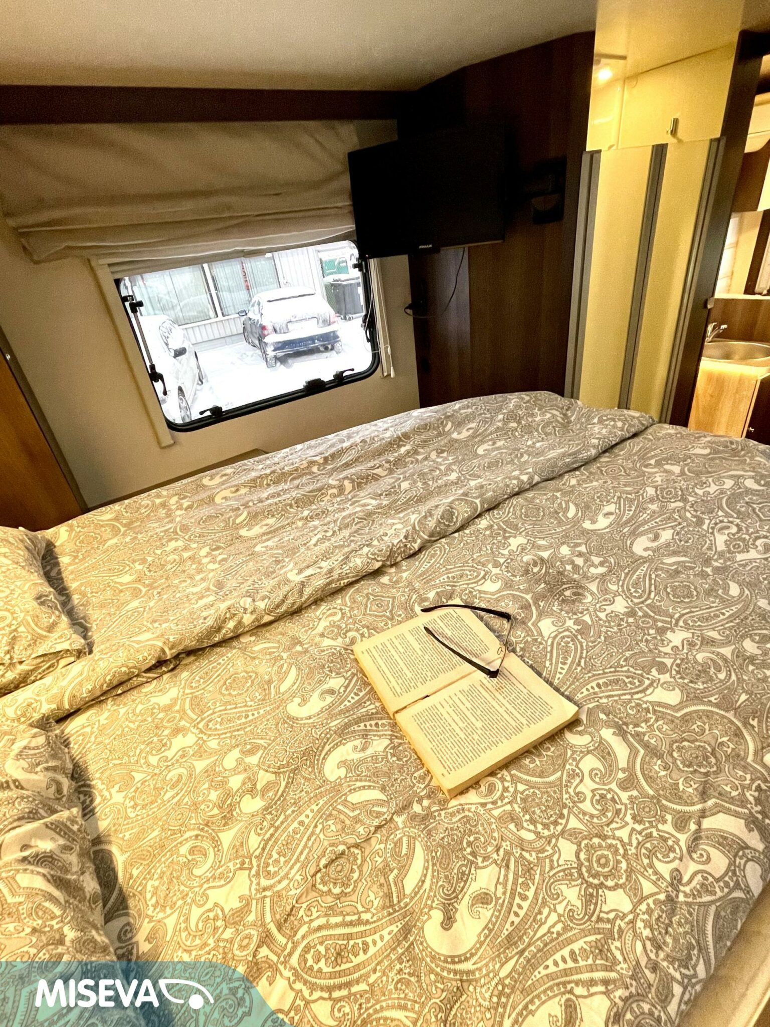 Uudehko puoli- integroitu matka- auto korkeussäädettävällä parivuoteella, suurella takatallilla ja tehokkaalla 170hv- koneella.
