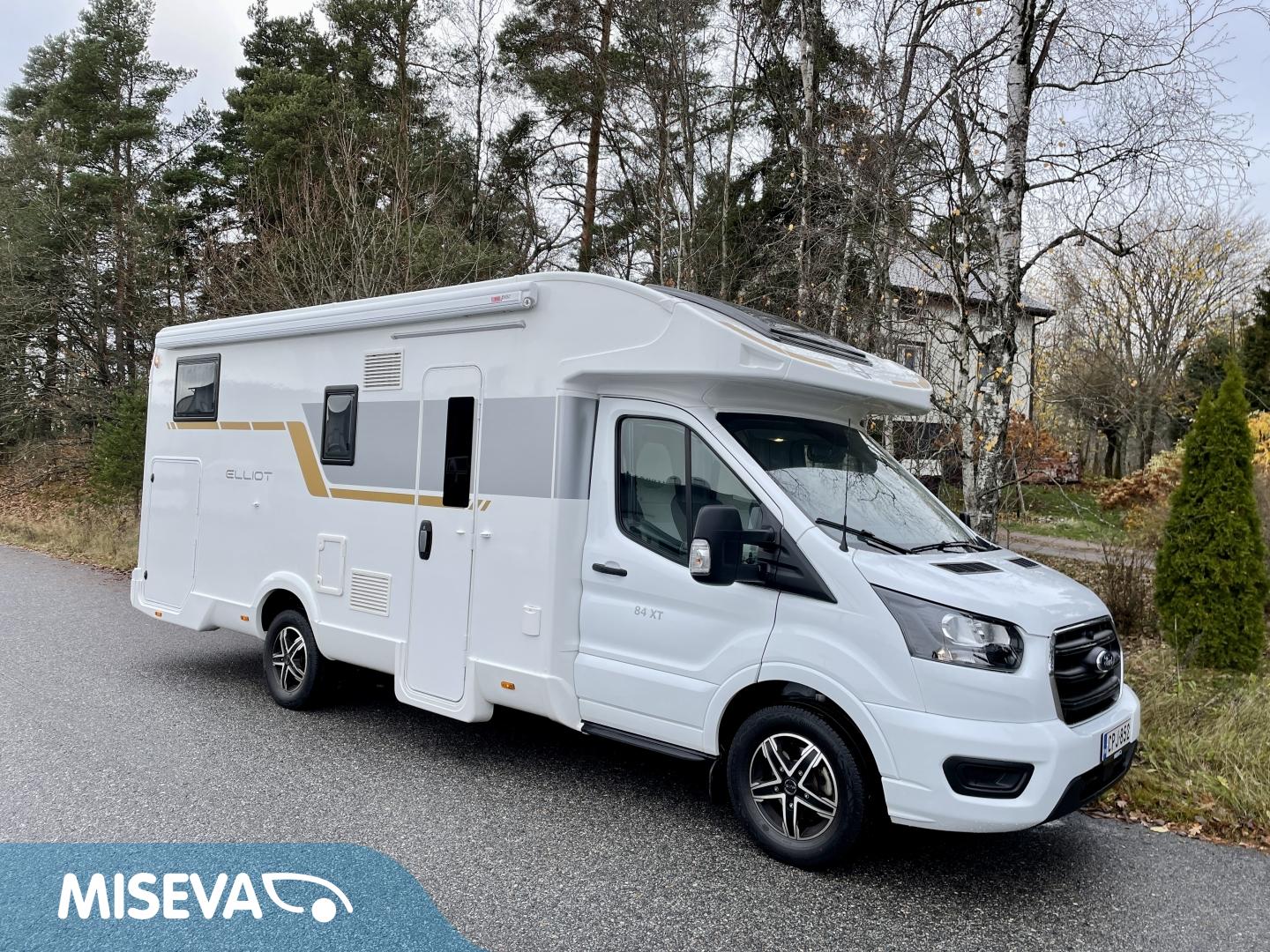 Kattavat varusteet, mm : 2 x Ilmastointi, Truma- keskuslämmitys sähköpatruunalla, Lämmitettävä harmaavesisäiliö, Markiisi, Pyöräteline, 2 x Renkaat, Aurinkopaneeli
