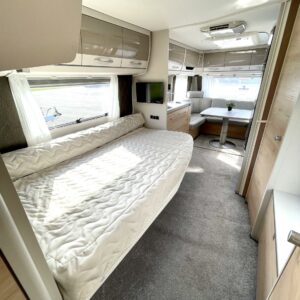 Upea ja tykätty Dethleffs klassikko perhevaunu. Perässä lastenhuone, jossa 3-kerrosvuoteet ja pöytäryhmä, joka sijattavissa vuoteeksi.