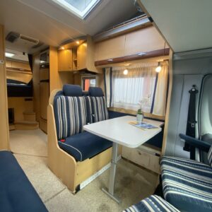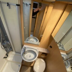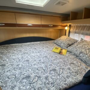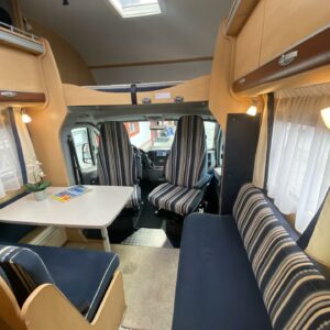 Mahtavilla varusteilla ja isolla 3 litraisella ”ketjukoneella” varustettu alkovimallinen matka-auto ympärivuotiseen käyttöön. Tästähän löytyy löytyy sitten vaikka ja mitä, joten ehkä ei kaikkea tähän esittelytekstiin laiteta (katso erikseen alle luetellut varusteet), niin ei tule liian pitkä tarina. Auton takaosassa on poikittainen parivuode. Alapuolelle jää huikeat säilytystilat minne on lisätty hyvinkin toiminnallisia ratkaisuja, kuten kaksitasoinen lattia, sekä takaseinältä kääntyvät säilytyshyllyt. Keskelle on sijoitettu L-keittiö, sekä WC/kylpyhuonetilat. Etuosaa hallitsee tilava pöytäryhmä minne yhdistyvät kääntyvät ohjaamon penkit, sekä kahden hengen sivusohva. Lämmittimenä on Alden nestekeskuslämmitys ja tämä on lämmönvaihtimen avulla yhteydessä myös moottorin jäähdytysnestekiertoon. Asunto-osalle on oma Dometicin kattoilmastointi, erinomainen varuste esimerkiksi jos mukana matkustaa lemmikkejä. Ohjaamossa ikkunat ja peilit sähköllä, multimedianäyttö toimii musiikkiviihteen lisäksi peruutuskameran kuvan ja navin näyttönä. Moottori voidaan esilämmittää pakkasilla käyntilämpötilaan polttoainetoimisen lisälämmittimen (Webasto) avulla. Reilun kokoinen mahtavat tilat tarjoava auto minkä ohjastamiseen vaaditaan vähintään C1 luokan ajokortti. Ajomäärä (85tkm) erittäin maltillisella tasolla ja tällä autolla on ollut vain kaksi käyttäjäomistajaa.