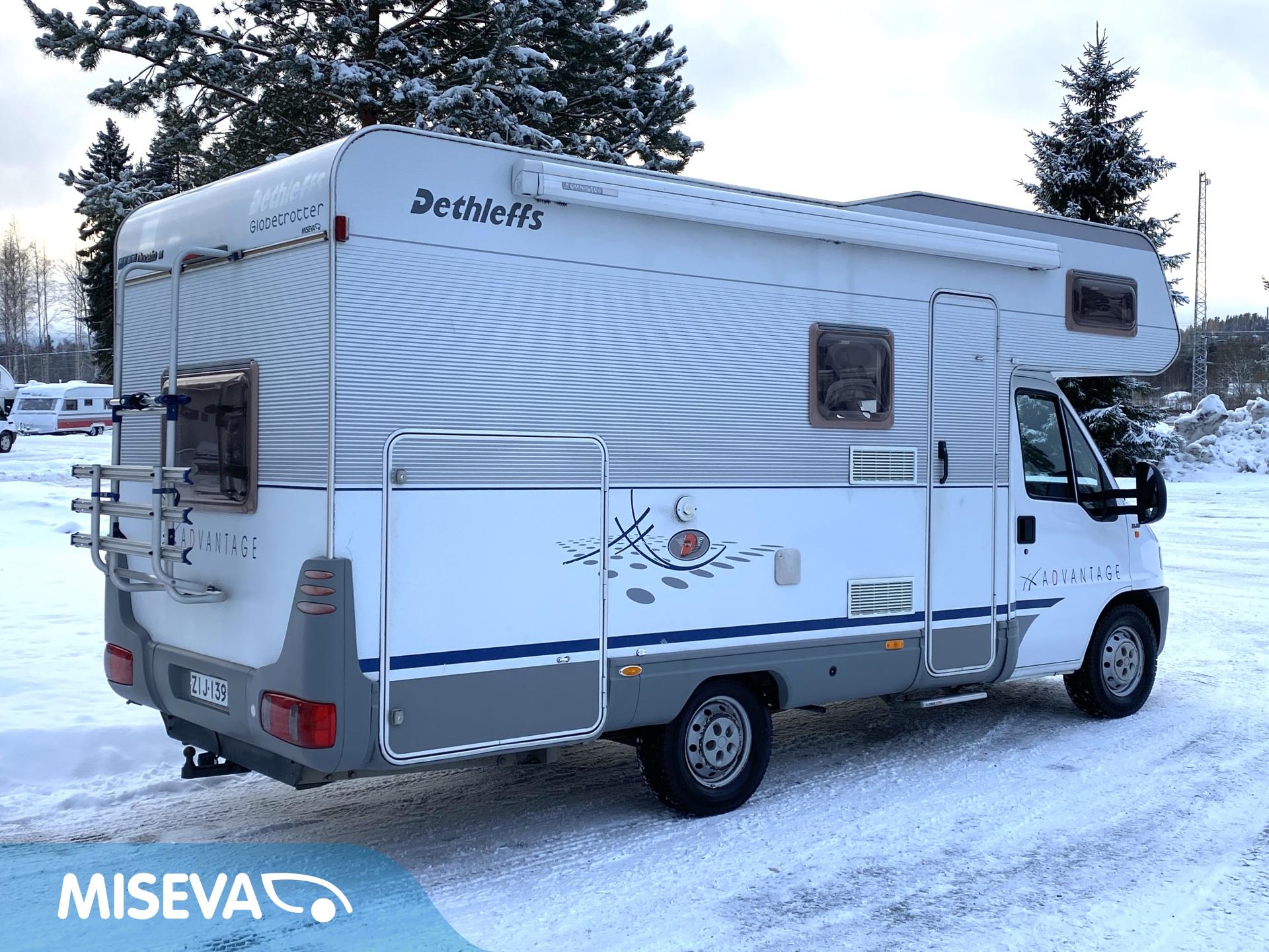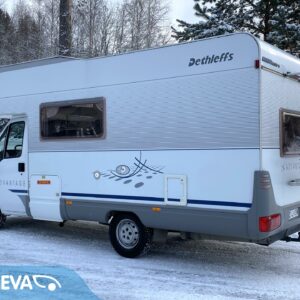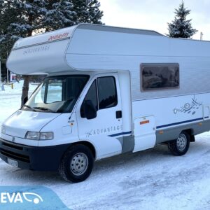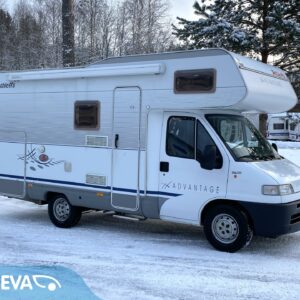 Oikein asiallinen auto. Eteneminen on vaivatonta, kun nokalta löytyy 2.8 litrainen ”isolohko” JTD. Edellisellä käyttäjällä vuodesta 2014. Mukavasti vuodepaikkoja (6hlö.) ja saman verran rekisteröityjä matkustuspaikkoja. Takana on kerrosvuoteet poikittain. Keittiöstä löytyy kaikki perustarvikkeet kokkailuhommiin. Edessä vastakkain istuttava pöytäryhmä mistä saa sijattua vuoteen kahdelle henkilölle. Ja tottakai löytyy myös asialliset WC/kylpyhuonetilat. Lämmityksenä Trumaticin ilmakeskuslämmitys. Samassa ”pannussa” on myös lämminvesivaraaja lämpimän käyttöveden aikaansaamiseksi. Mukava lisävaruste on myös autosta löytyvä sähköinen lattianlämmitys. Pihalle lisätilaa saa laajennettua kotelomarkiisin avulla, mikä suojaa mukavasti niin auringon paahteelta, kun vesisateeltakin. Polkupyörät mukaan saa takaseinällä olevaan pp-telineeseen. Talvirenkaat nastoilla on aivan uudet ja kesärenkaatkin huippukuntoiset. Vetokoukkukin löytyy, vetomassojen ollessa 750kg jarrutonta kärriä ja 1740kg jarrullista kärriä. Tästä vaikka yrittäjälle reissuhommiin alv. vähenyskelpoinen keikkakoti.