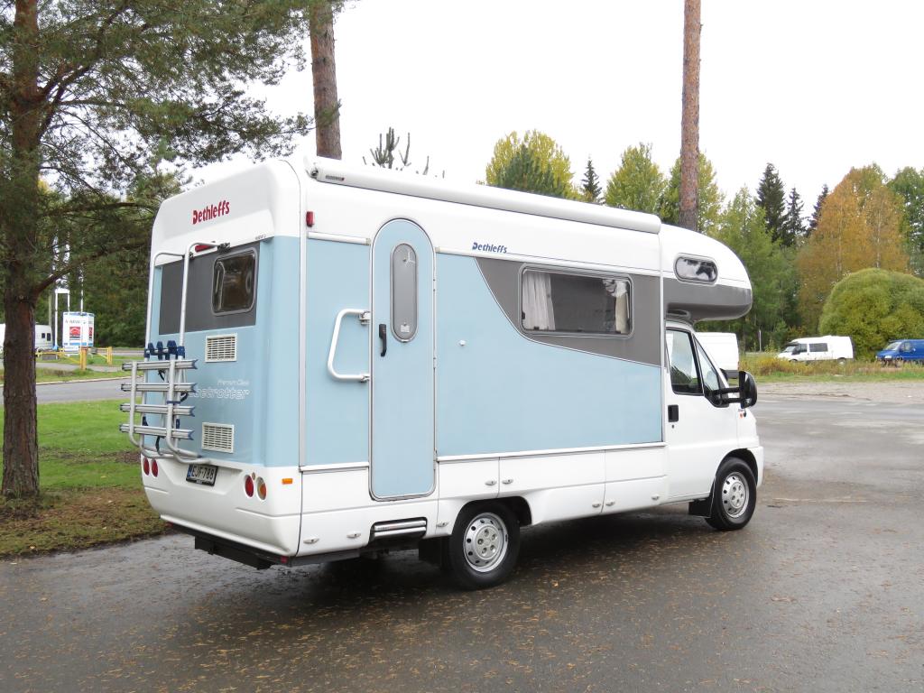 Varusteina mm: Tehokas 6 kW- Truma- keskuslämmitys, Markiisi, Pyöräteline,..