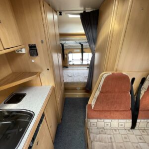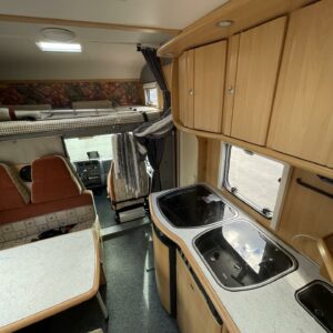 Laadukas kerrosvuoteinen matka-auto, jossa vuoteet ja istuinpaikat kuudelle matkustajalle. Alde- nestekiertolämmityksen ansiosta autolla voi reissata huoletta ympäri vuoden.