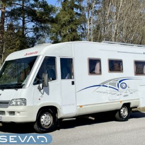 Aurinkopaneeli, Jääkaappi, Kasetti WC, Kasettiverhot, Kattoluukku, Liesi, Lämminvesiboileri, Markiisi, Ohjaustehostin, Pakastelokero, Parivuode, Pesuallas, Pyöräteline, Radio, Sähkörappu, Turbo, Vetokoukku, Ilmastointi ajotilassa, Suihku, Trumatic, Keskuslämmitys, Kesärenkaat